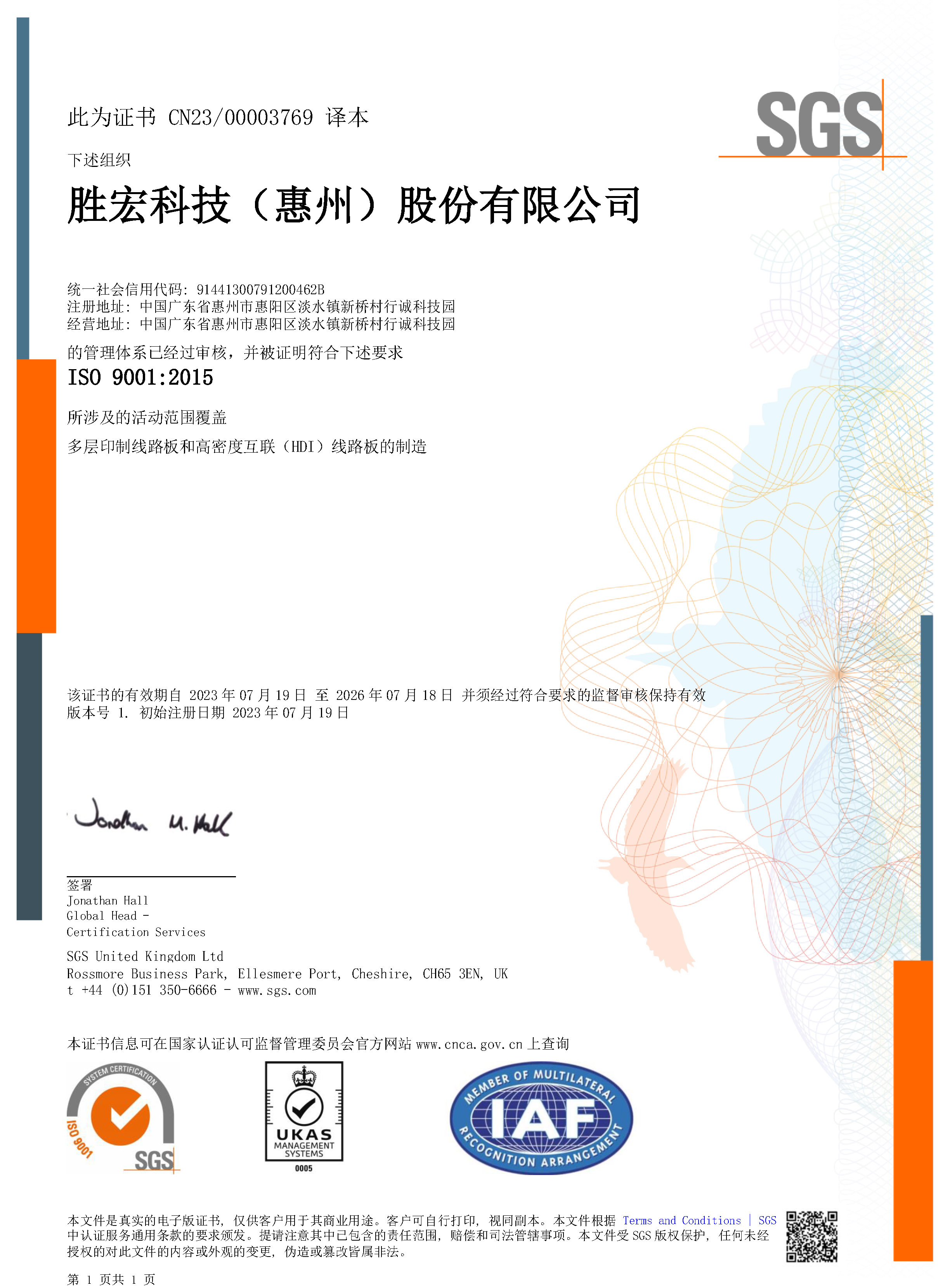 IATF169492016汽车行业质量管理系统证书