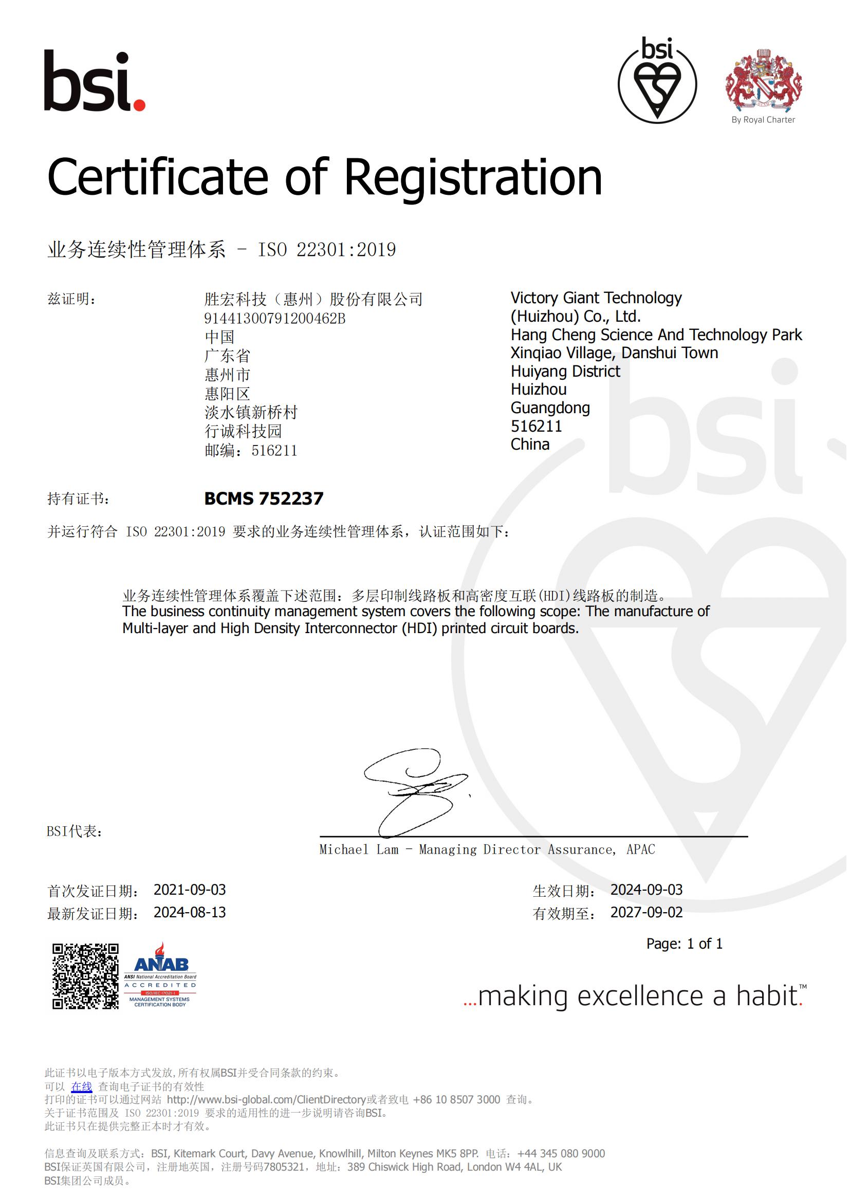 ISO22301营业一连性管理系统